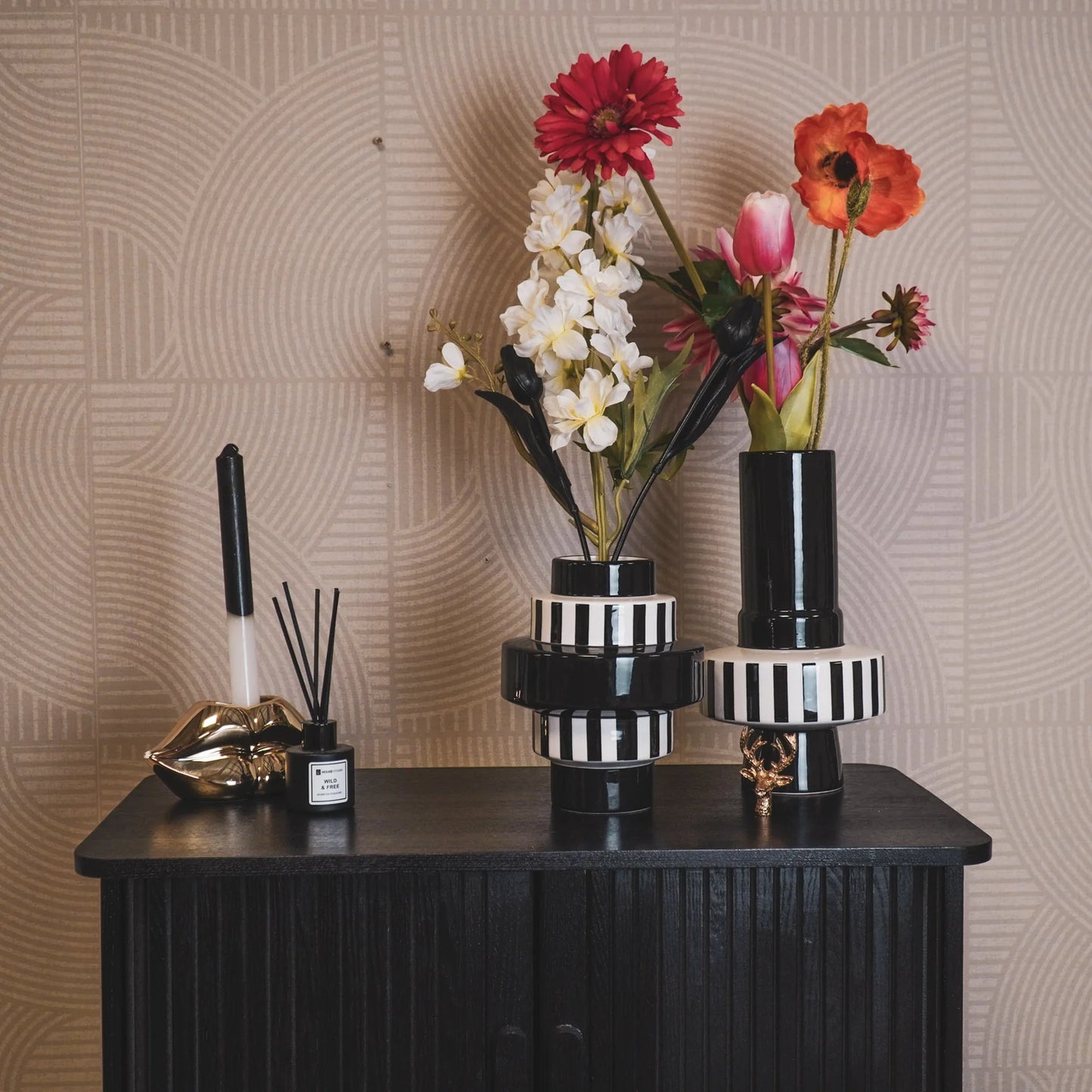 Questo sorprendente vaso ZEBART in ceramica a righe in bianco e nero porta uno stile contemporaneo audace in ogni ambiente.